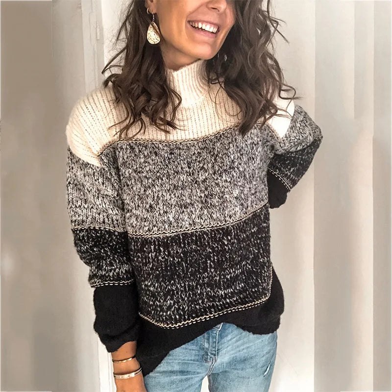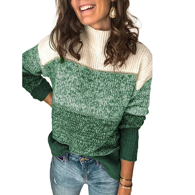 Ženski pleteni pulover – pulover z visokim ovratnikom – sproščen kroj – rebrasti robovi